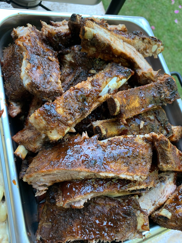 St. Louis Ribs: Dry rubbed and smoked until tender. BBQ sauce included . 2- racks (24 bones) $85