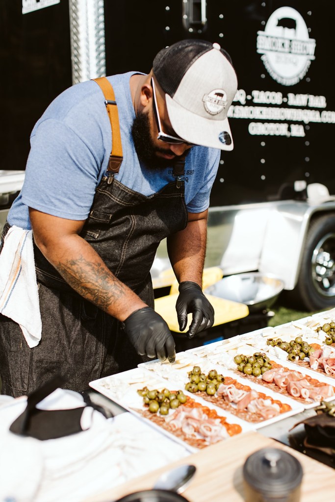 Smoked & Pulled Pork: a Smoke Show Legend! Pork butts are rubbed with chipotle peppers, brown sugar, salt and herbs and left to sit overnight. Then the butts are smoked until the meat is succulent and falls apart. Included Golden BBQ sauce $115